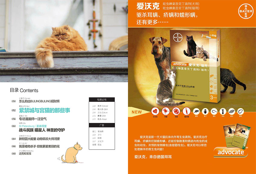 此外,还致力于提高读者对宠物福利的关注,杂志呼吁读者关爱流浪宠物,提倡领养代替购买。杂志中也有相关报道,介绍了一些成功的领养案例和宠物救助组织的活动。在视觉设计方面,杂志注重美观性和易读性。杂志采用高质量的图片和清晰的排版,让读者在阅读的过程中享受到视觉上的愉悦。同时,杂志的语言简洁明了,易于理解,让读者能够轻松获取所需信息。