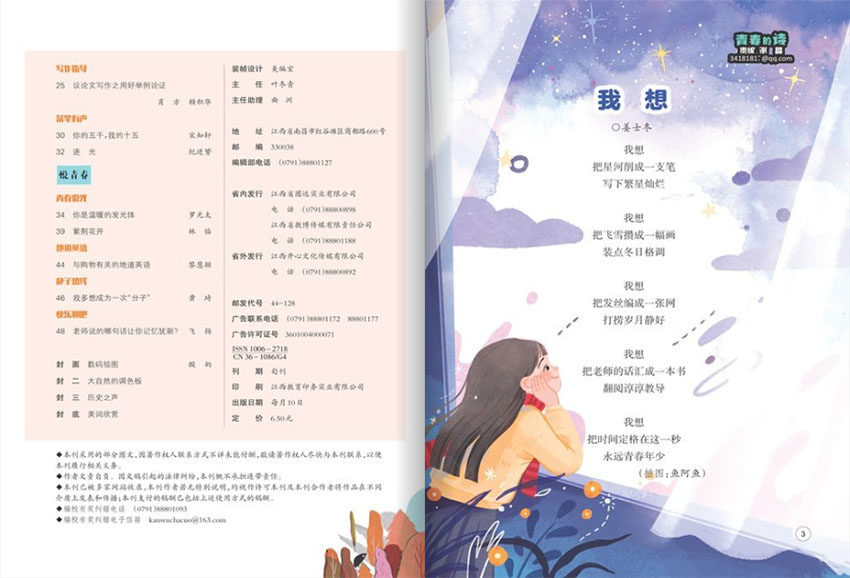 杂志的出版宗旨是关注学生的全面发展,旨在通过其丰富的内容和精心选择的文章,帮助学生提升学业成绩,培养各方面的能力,拓宽生活视野,增强综合素质。通过阅读该杂志,学生可以获得全面的教育指导,丰富自己的知识储备,提高学习方法和技巧,并在德育和情感发展方面得到积极的指导。杂志在内容选择上注重实用性,突出学习方法和技巧的指导,除了传授学科知识,还会提供一些学习策略、时间管理方法等,帮助学生提高学习效果。