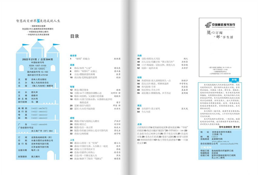 《做人与处世》杂志不仅是一本关注孩子成长的读本,更是一本传递美德智慧的期刊,致力于为读者提供沉淀思考、启发智慧的精神食粮,引领人们在日常生活中做一个更好的人。